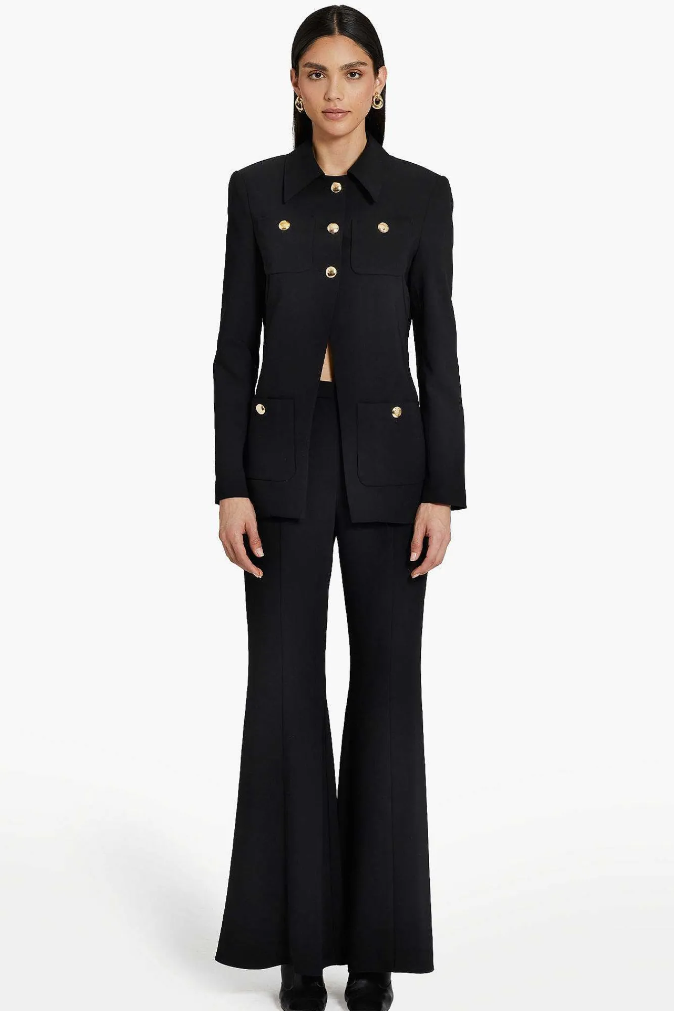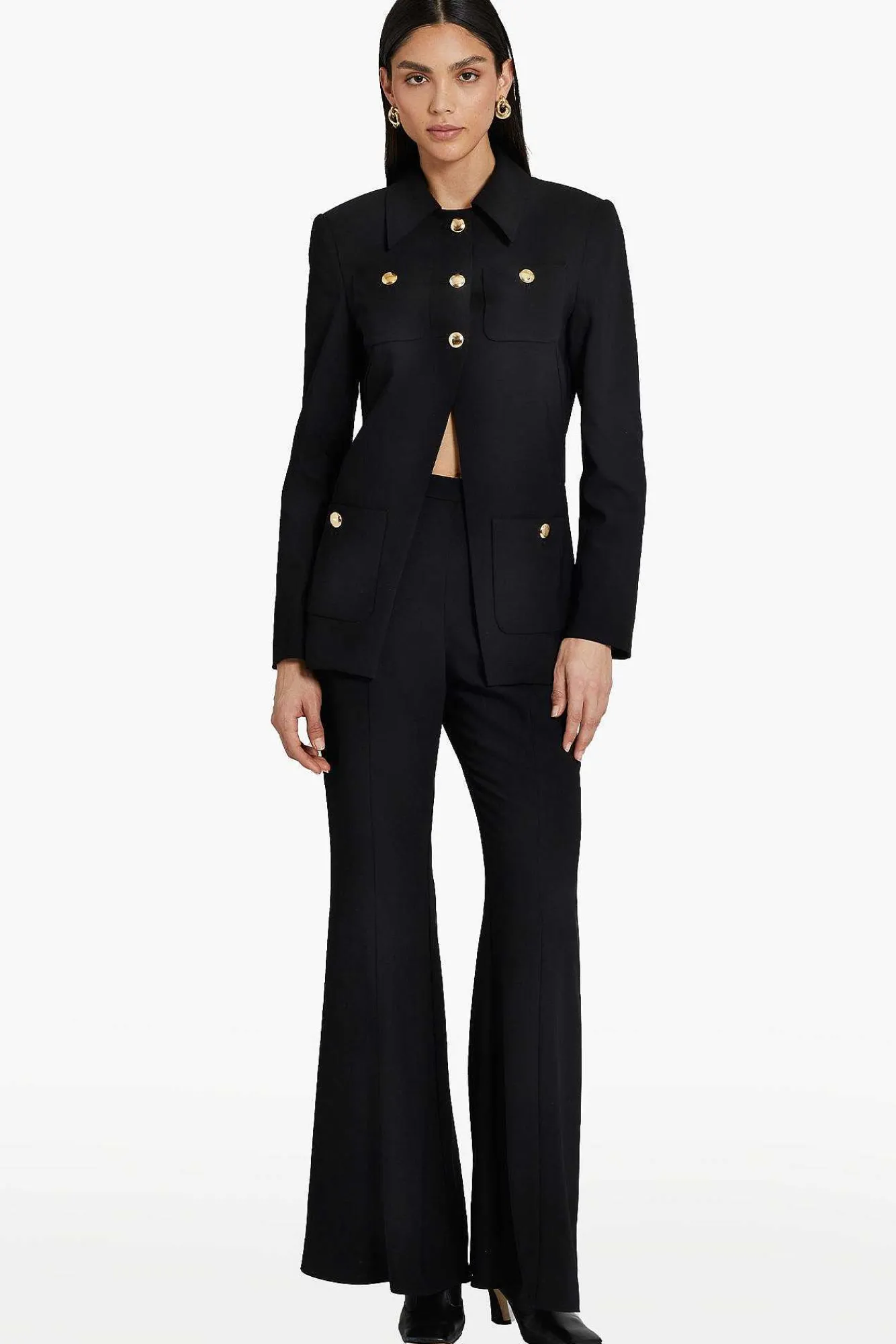DescriptionCollared JacketFour Front Pockets Novelty Gold Buttons At Center FrontFully LinedSelf: 100% Polyester; Lining…