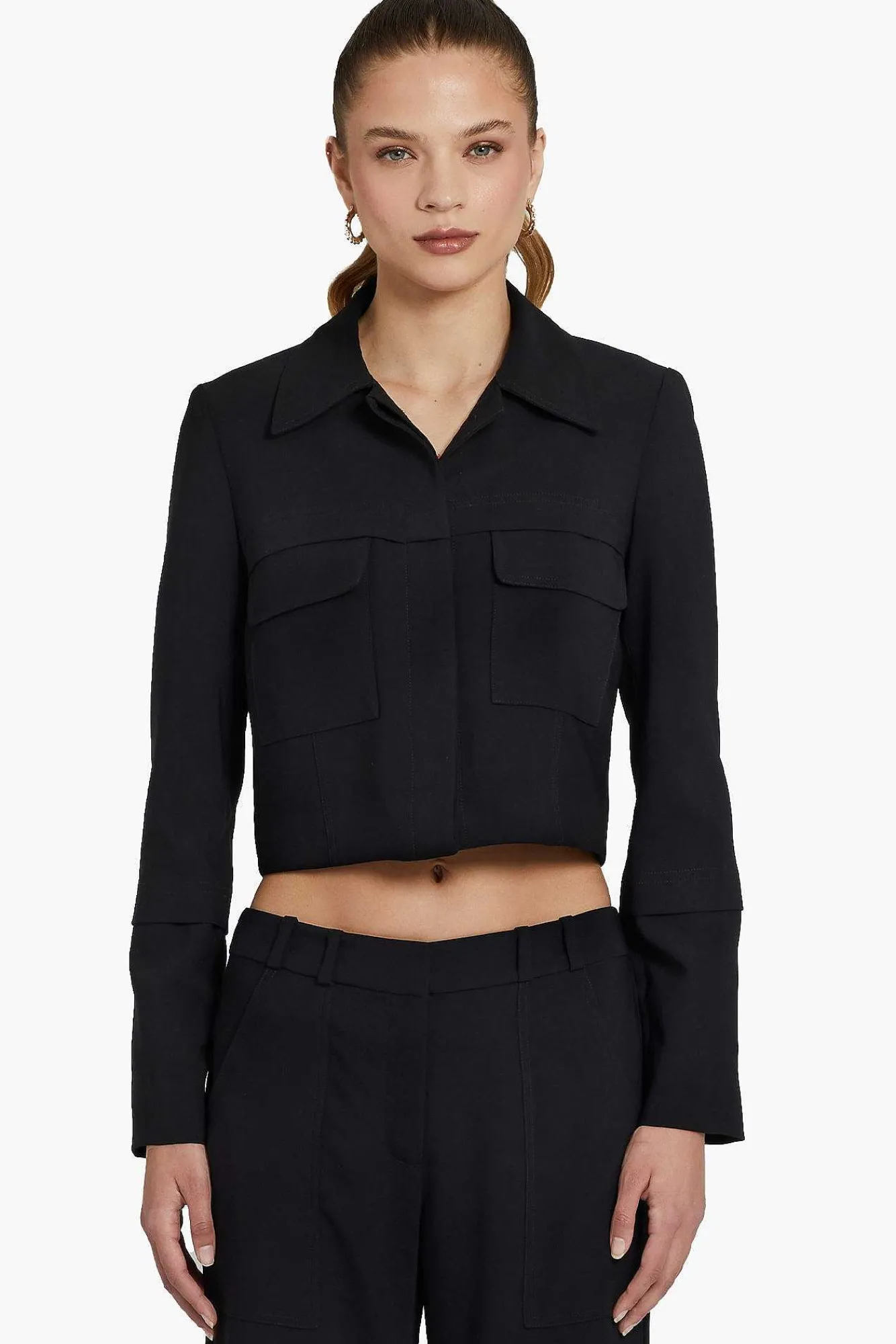 DescriptionCollared JacketTwo Chest Pockets On Front Sleeve Overlay Detail Fully LinedSelf: 100% Polyester; Lining: 100%…