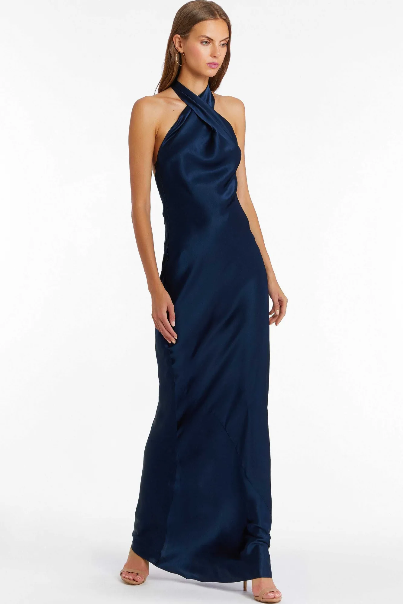 DescriptionMaxi Dress Crossover HalterUnlined100% Silk Dry Clean Only Sc-22335