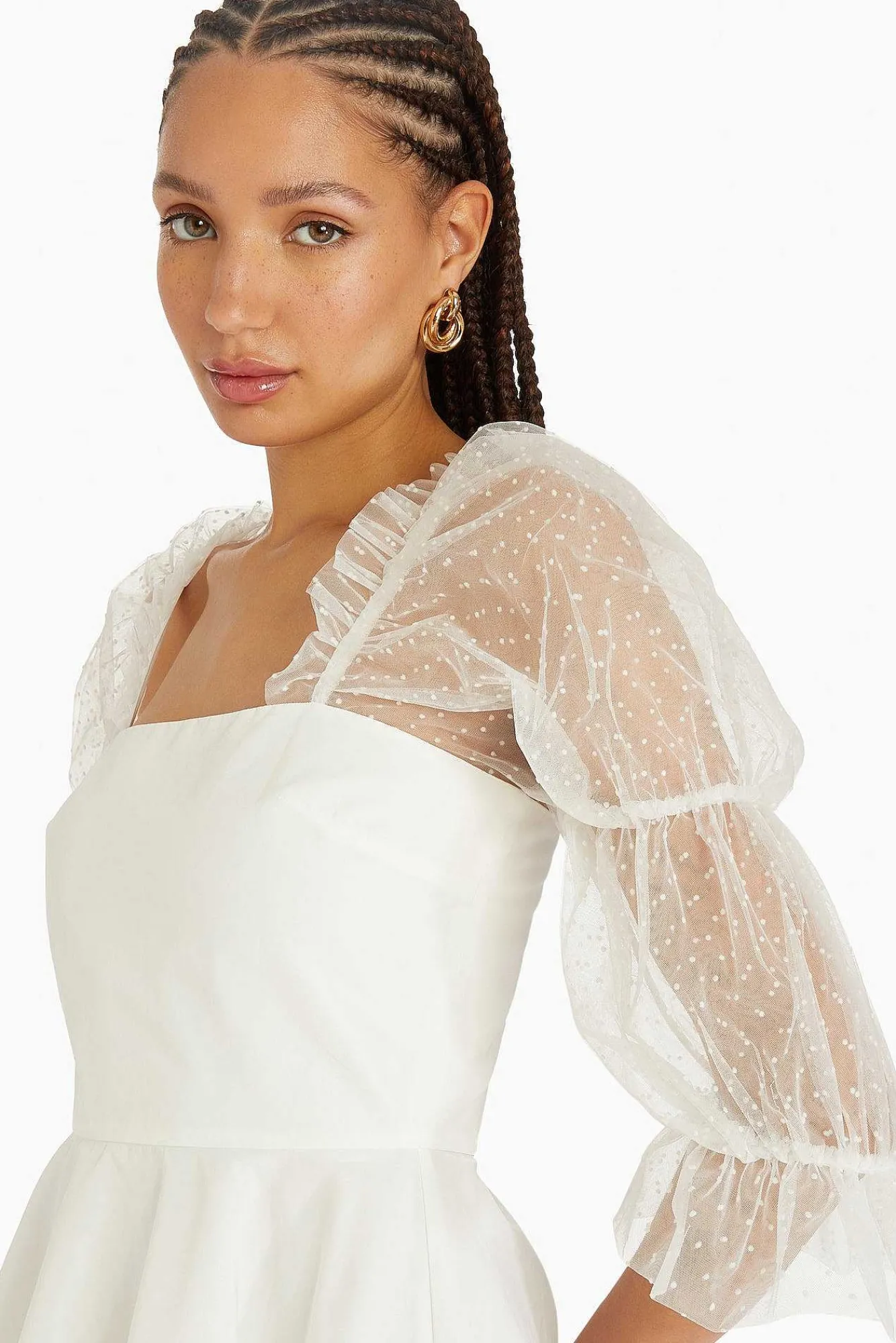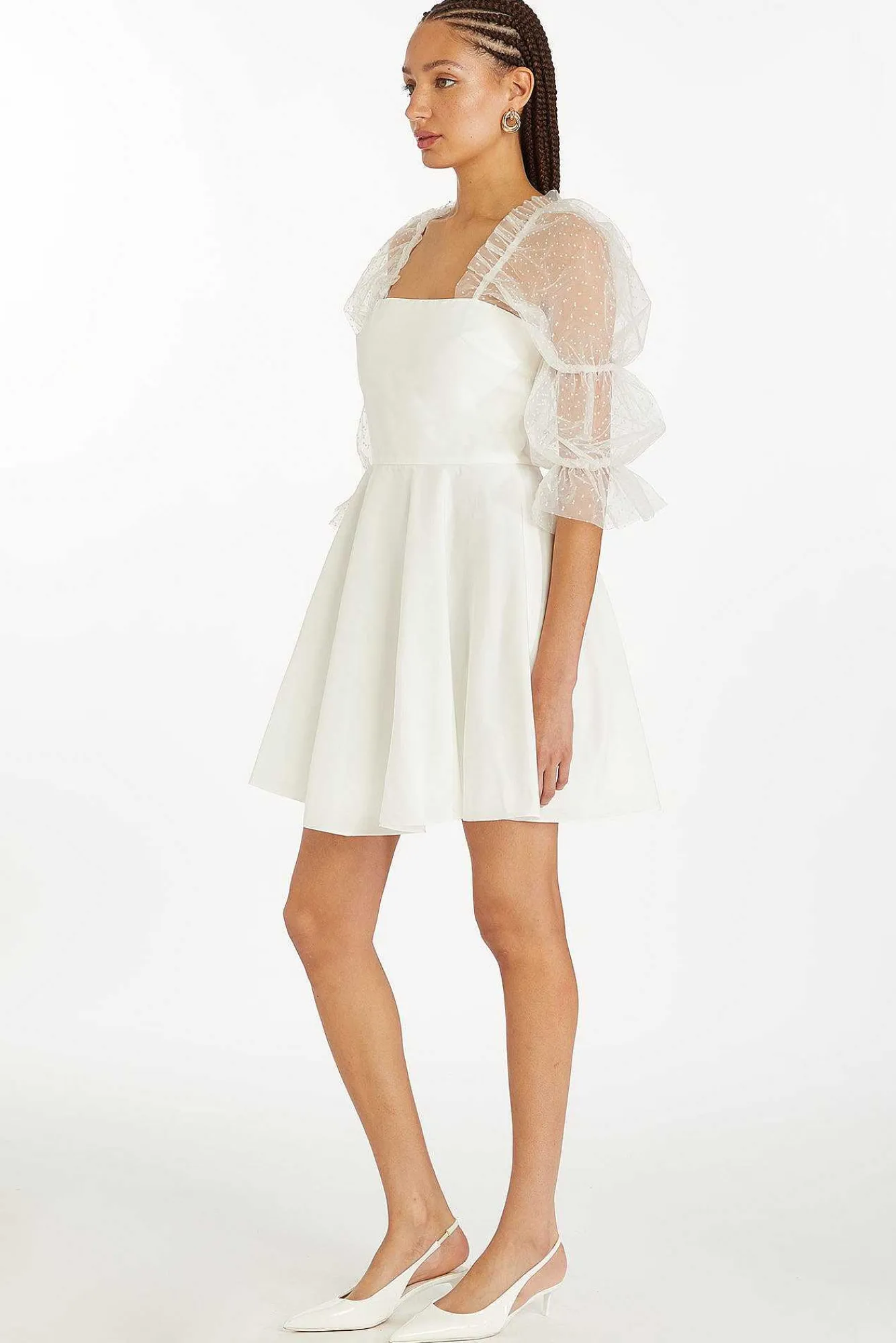 DescriptionMini Dress Organza Puff Sleeves Straight Neck Invisible Zipper Partially Lined Self: 100% Polyester Lining: 1…