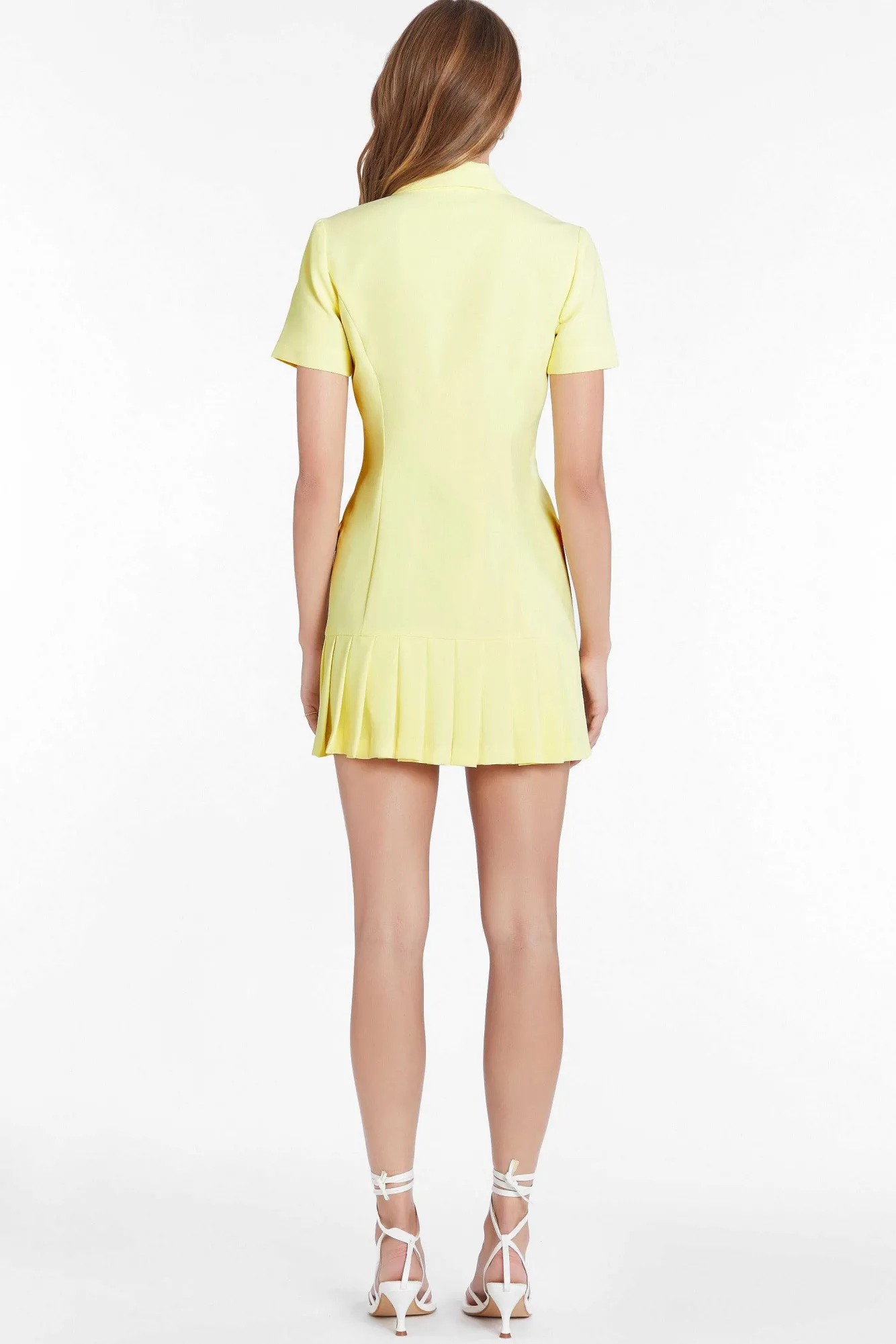 DescriptionMini DressShort SleeveCover Buttons Pleated Skirt Fully Lined Self: 100% Polyester Lining: 100% Polyester Dry…