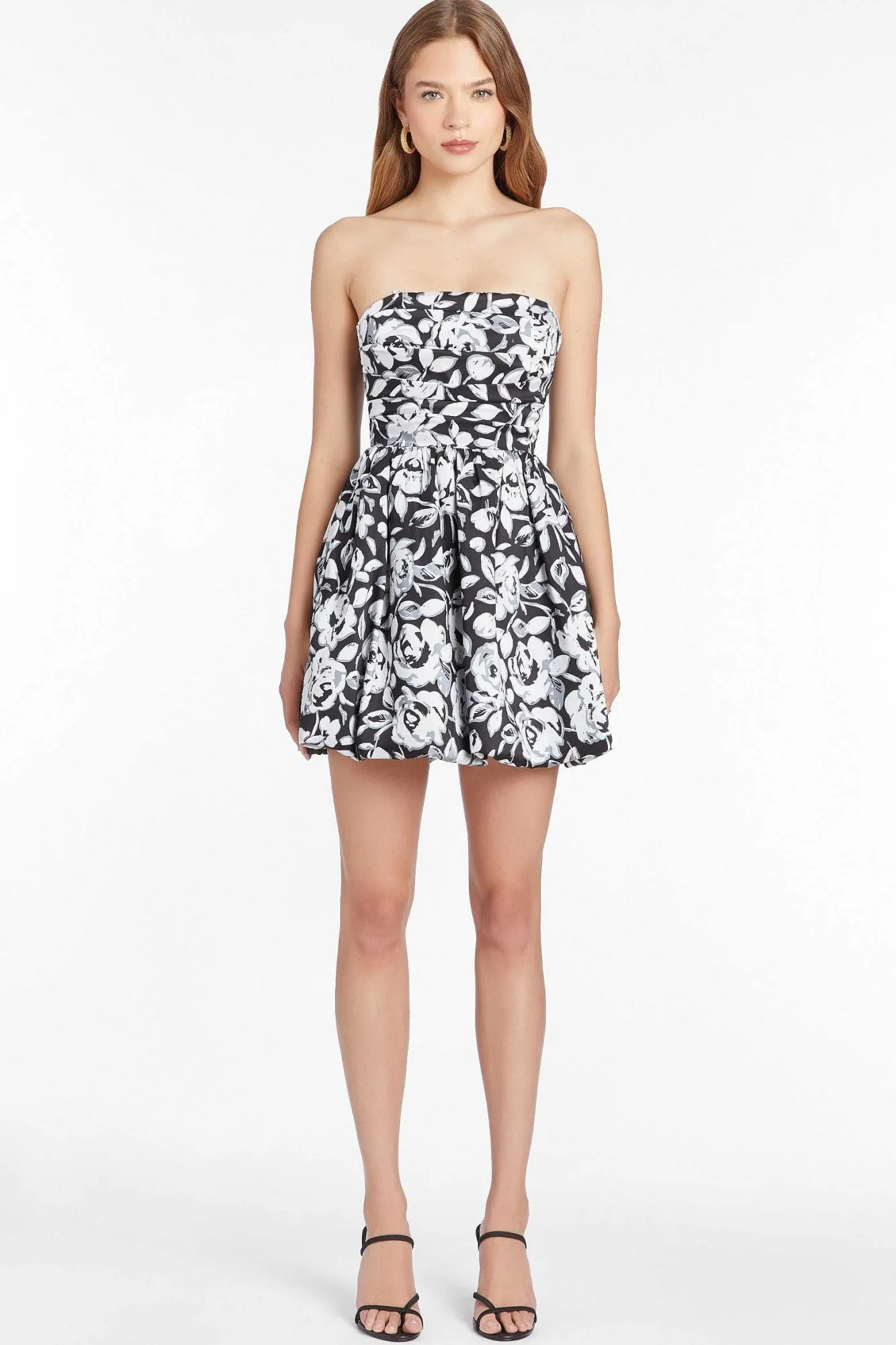 DescriptionMini Bubble Dress Strapless Shirring Along Bodice Smocked Panels At Back Invisible Zipper Partially Lined Sel…