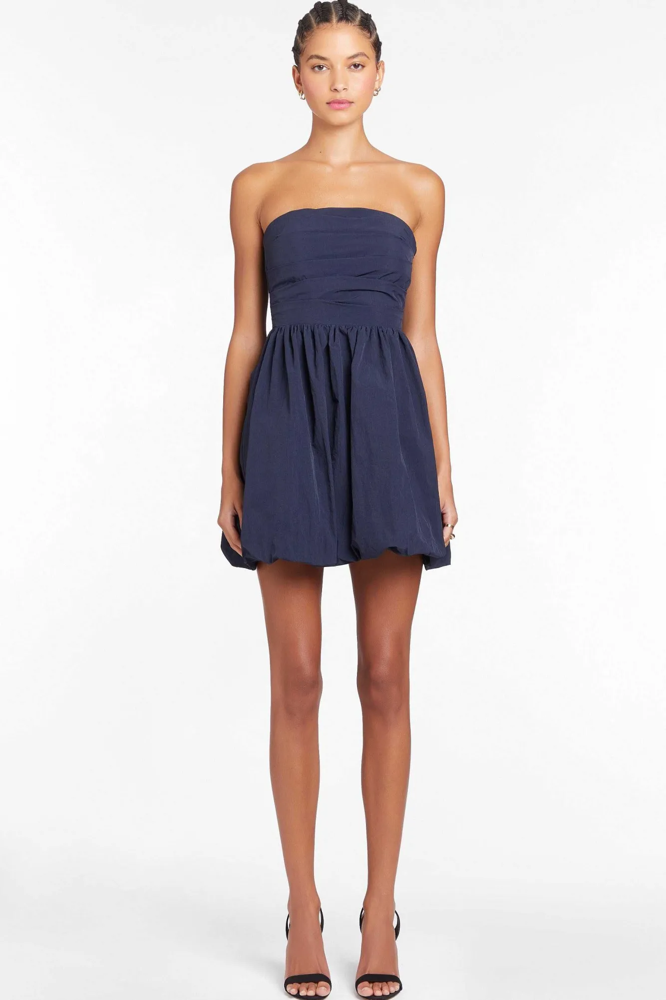 DescriptionMini DressStrapless Bubble Skirt Side Smocking Poly Stretch LiningSelf: 100% Polyester; Lining: 100% Polyeste…