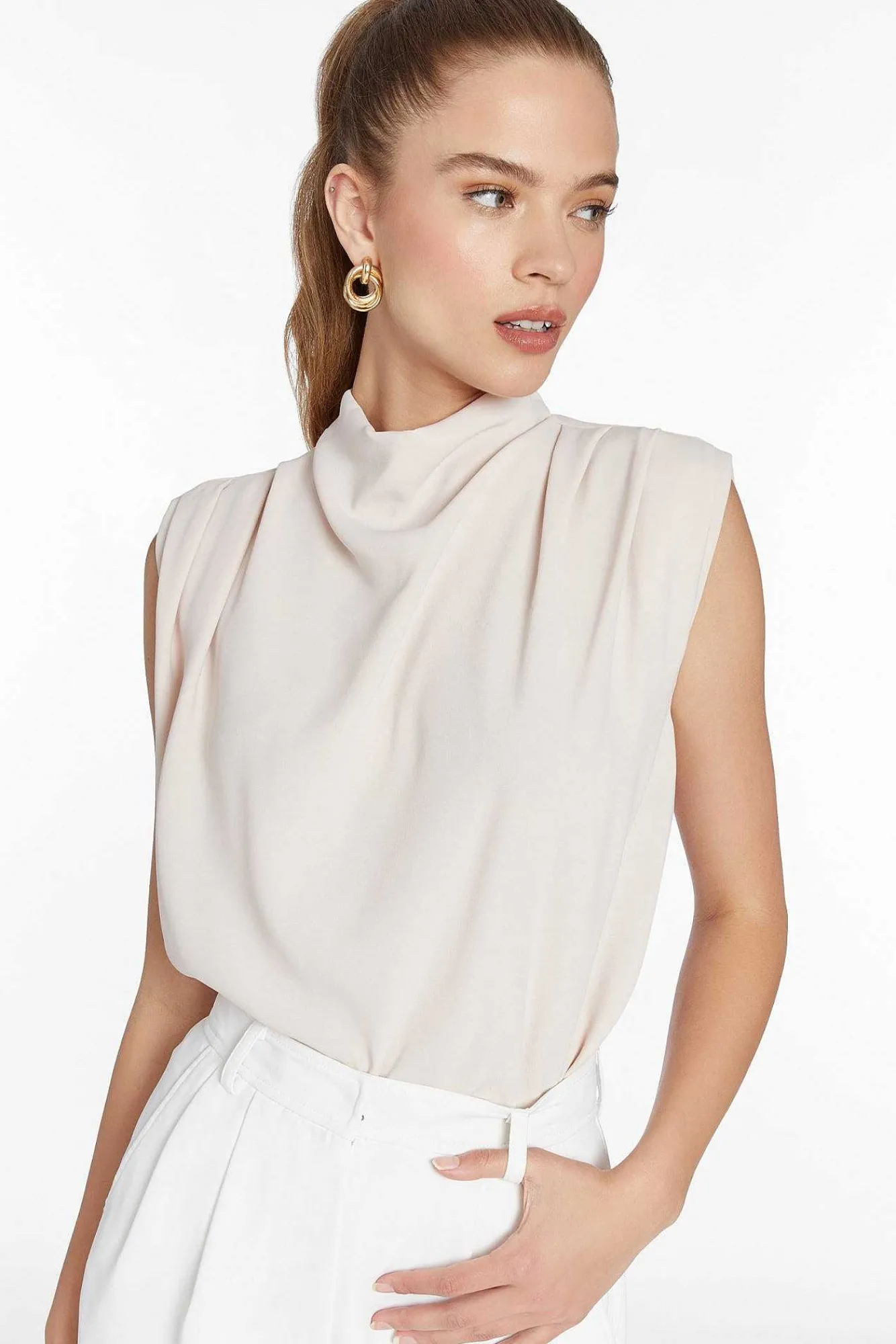 DescriptionBlouse Sleeveless Cowl Neck Zipper Closure In Back 100% PolyesterWash Cold, Line DryCi-30468