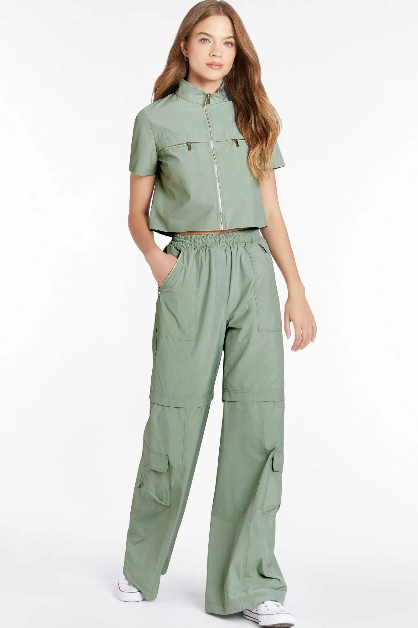 DescriptionPantsLoose FitElastic WaistbandMetal Zipper PocketsPartially LinedSelf: 100% Polyester Lining: 100% Polyester…