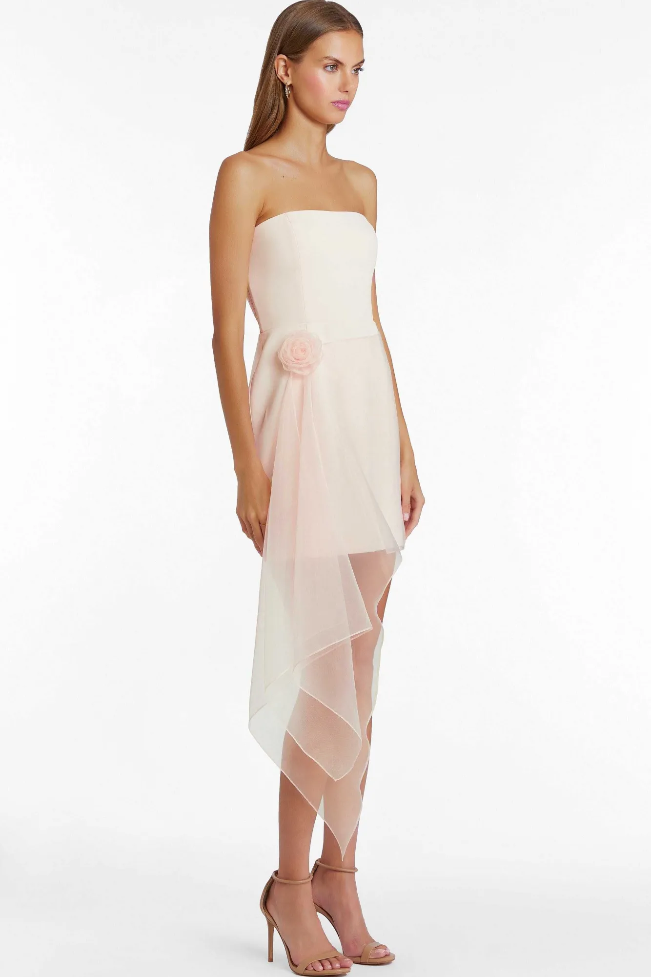 DescriptionMini DressStrapless Rosette Detail Invisible Zipper Partially Lined Self: 100% Polyester Combo: 100% Polyeste…
