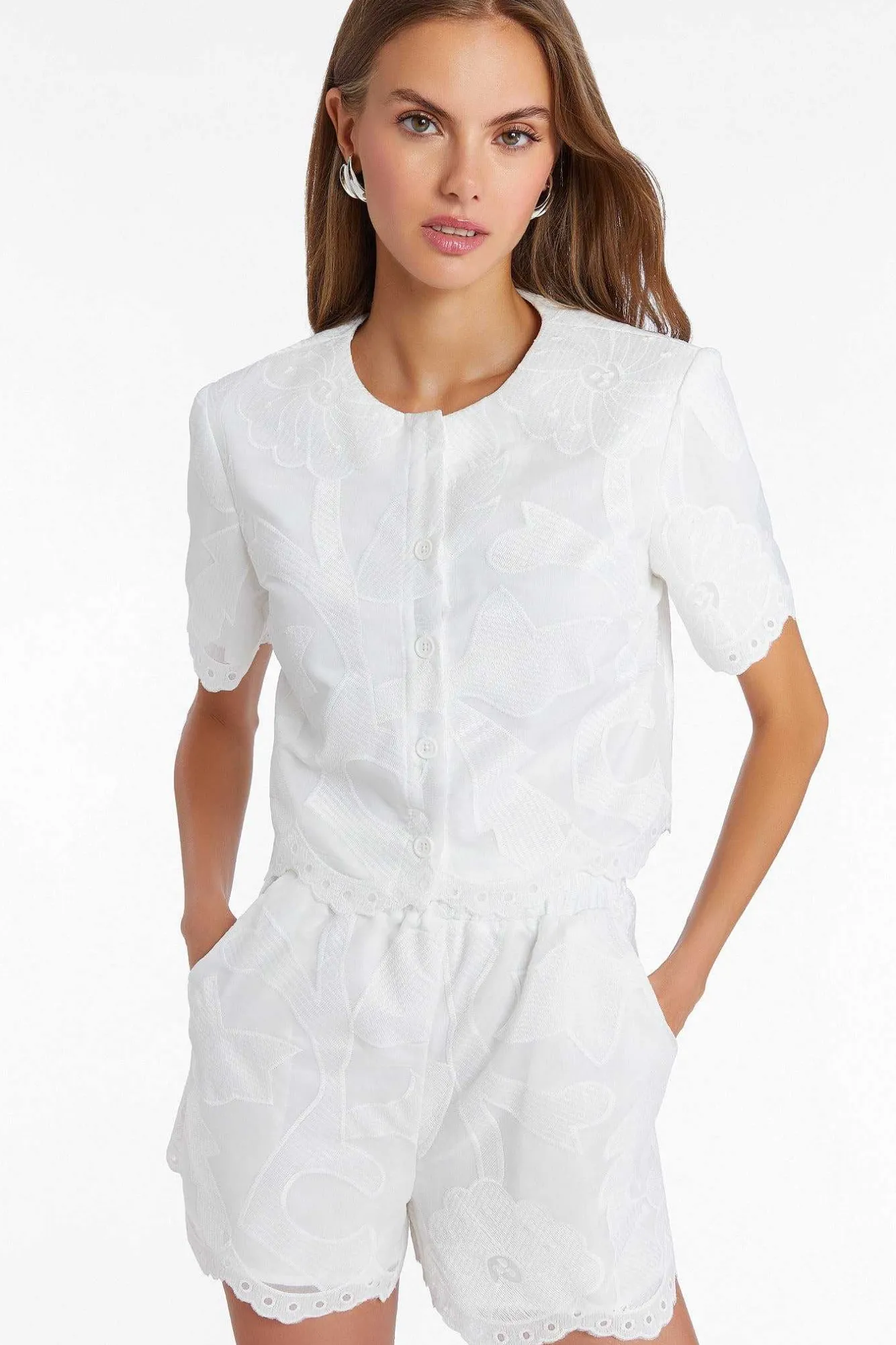 DescriptionShortsHigh Waisted Front PocketsScallop Hem Fully Lined Self: 100% Polyester Lining: 100% Polyester Dry Clean…