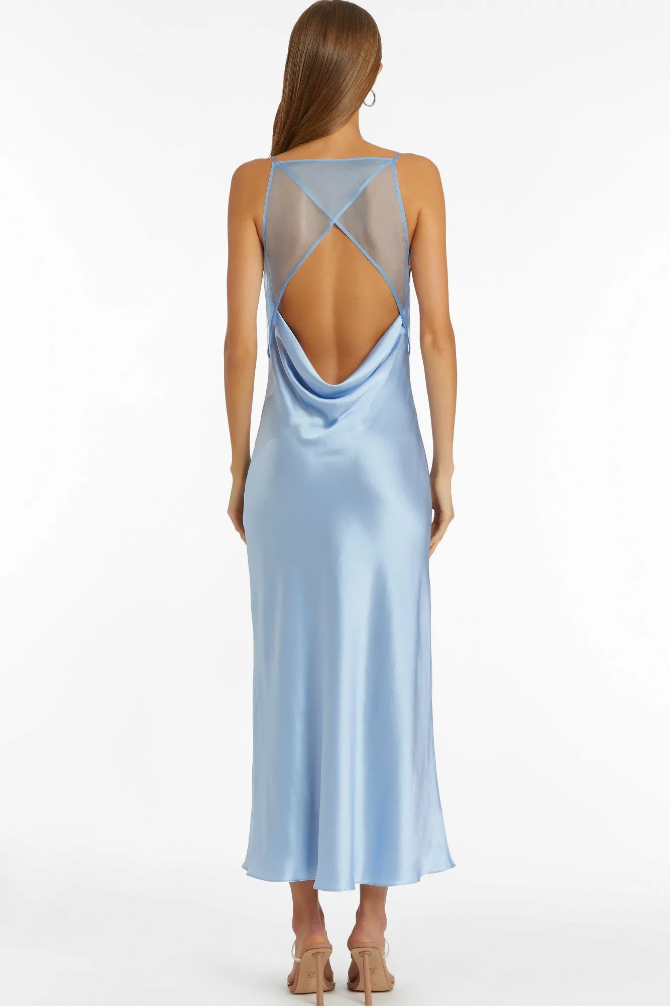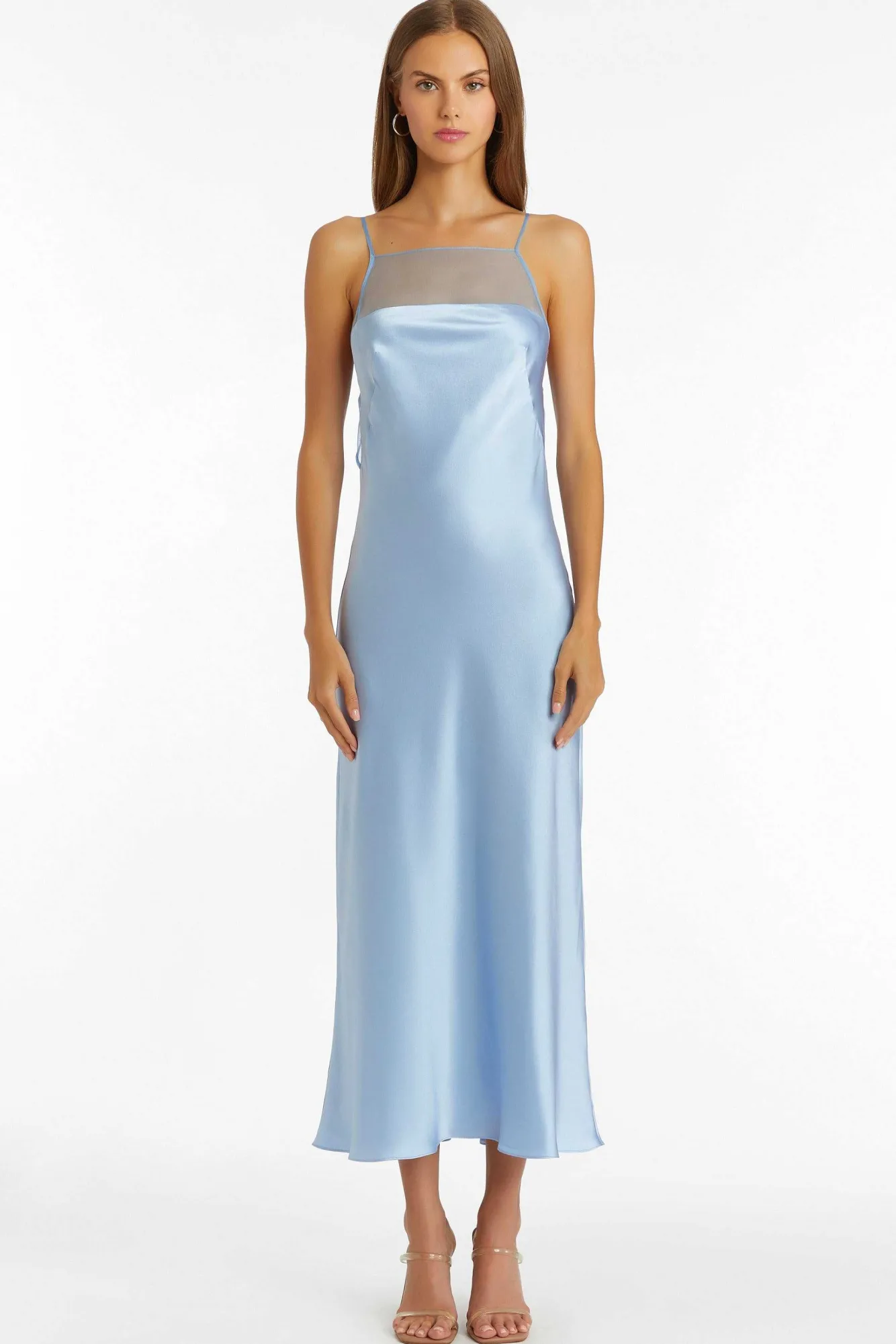 DescriptionMaxi Dress Spaghettini Straps Organza Combo Detail Open Lower Back With Cowl Detail Fully Lined Self: 100% Si…
