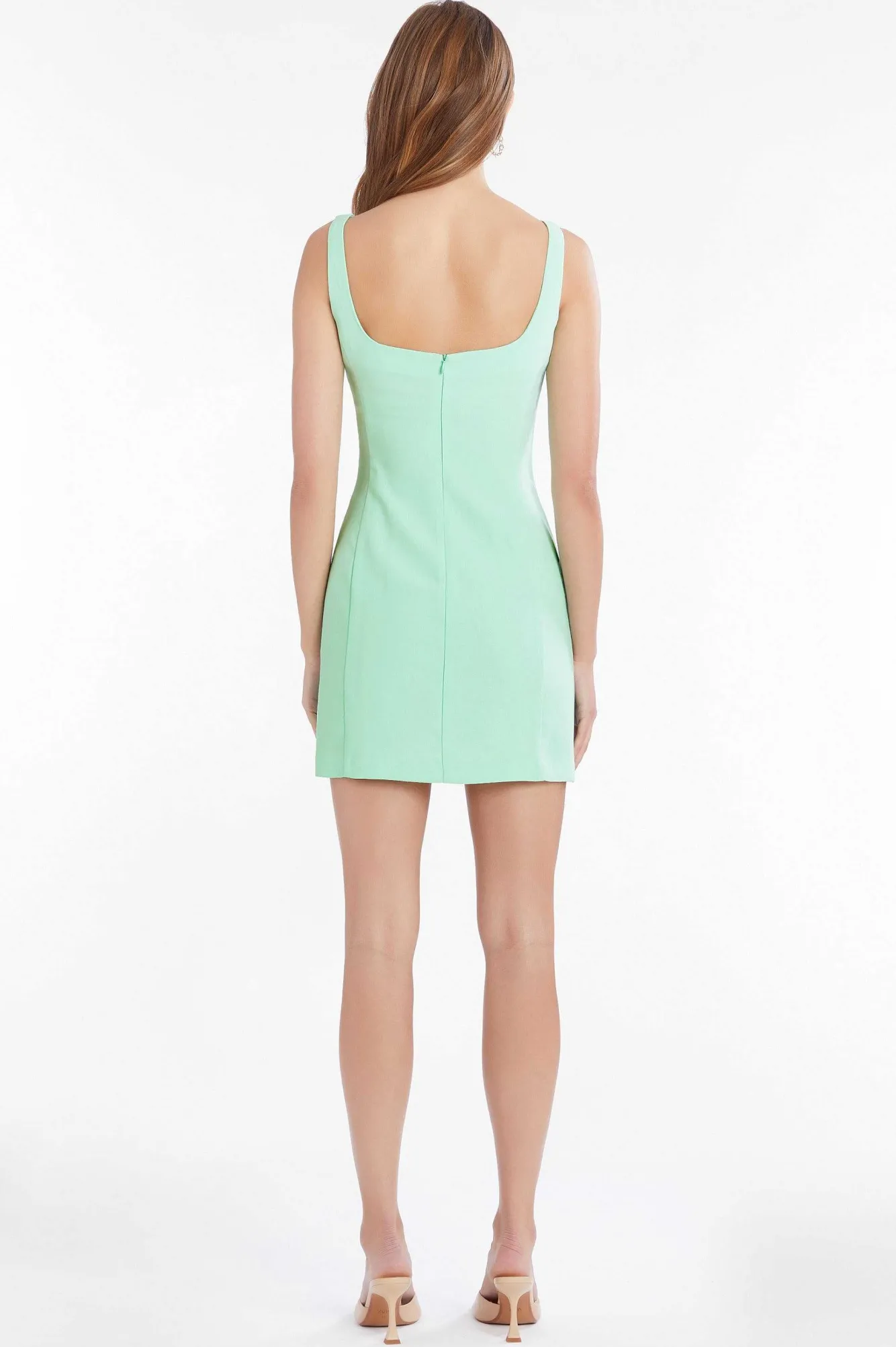 DescriptionMini Dress Sleeveless Square Neck Invisible Zipper Fully Lined Self: 100% Polyester Lining: 100% PolyesterDry…