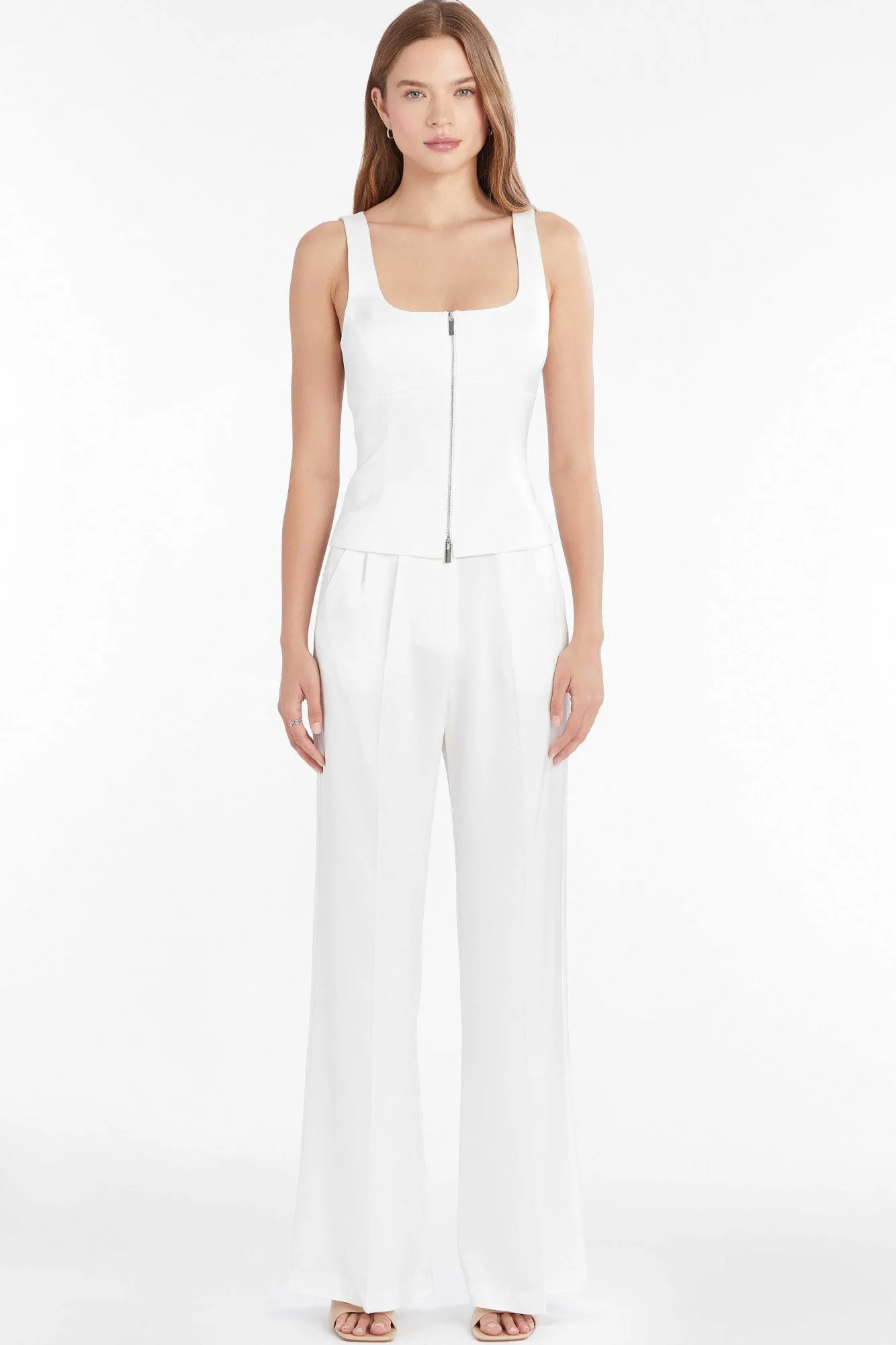 Description Top Sleeveless Scoop Neck Two-Way Metal Zipper Partially Lined Self: 100% Acetate Lining: 95% Polyester 5% E…