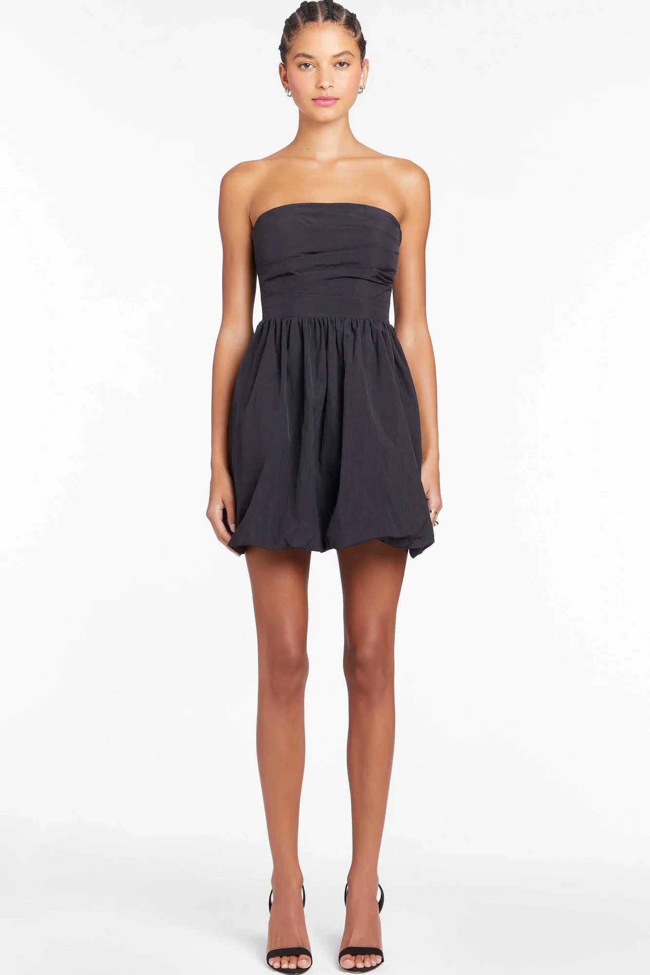 DescriptionMini DressStrapless Bubble Skirt Side Smocking Poly Stretch LiningSelf: 100% Polyester; Lining: 100% Polyeste…
