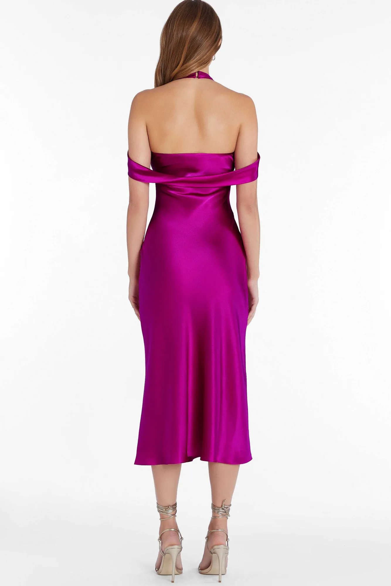 DescriptionMidi Dress Open Back Slip Dress With Rosettes Off-The-Shoulder Unlined100% Silk Dry Clean Only Sc-22280